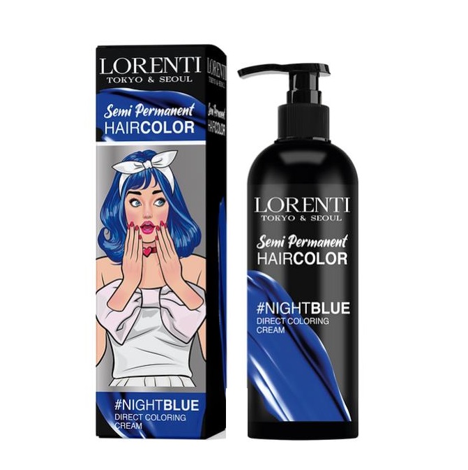 - LORENTI SEMI PERMANENT HAIR COLOR BLUE 250ml (Ημιμόνιμη βαφή 250ml σε χρώμα μπλε.)